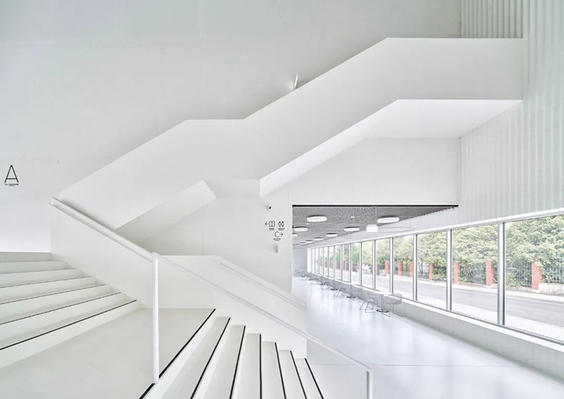 建筑師的城市設(shè)計(jì)策略側(cè)重于將音樂(lè)廳、前廳、學(xué)校和周?chē)部臻g融合在一起。新建筑重新組織了現(xiàn)有場(chǎng)地,使其具有連貫性和多功能性。它直接毗鄰人行道,沒(méi)有綠植緩沖帶,凸顯了其城市存在感,同時(shí)最大限度地利用了有限的土地面積。