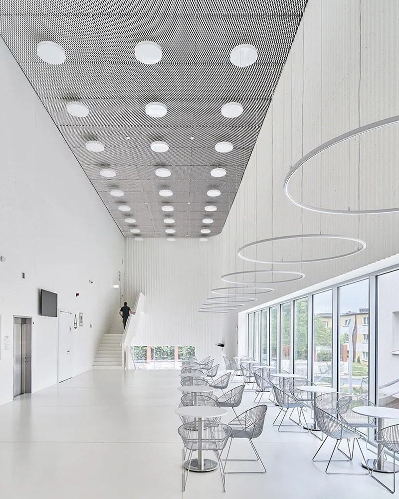 SLAS Architekci 設(shè)計(jì)的音樂(lè)廳是一個(gè)多功能空間,既支持學(xué)校的各類(lèi)教育活動(dòng),也包含了亞斯特?zé)岵冀?茲德羅伊廣泛多樣的文化活動(dòng)。音樂(lè)廳擁有量身定制的自然聲學(xué)效果,能夠增強(qiáng)音樂(lè)表演,為學(xué)生提供排練和演出的最佳環(huán)境。除了教育功能外,該場(chǎng)地還舉辦了數(shù)百場(chǎng)音樂(lè)會(huì)和城市活動(dòng),成為該地區(qū)重要的文化中心。該設(shè)施還包括一個(gè)咖啡館和一個(gè)前廳,前廳兼作藝術(shù)畫(huà)廊,展示當(dāng)?shù)厮囆g(shù)家的作品,而建筑前的廣場(chǎng)則是居民公共聚會(huì)的場(chǎng)所。