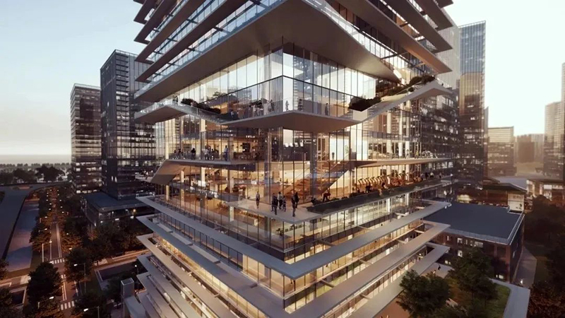 項(xiàng)目將為跨國(guó)高科技企業(yè)提供一個(gè)靈活、獨(dú)特且生動(dòng)的工作環(huán)境。項(xiàng)目建筑設(shè)計(jì)師Ennead 認(rèn)為:“創(chuàng)造并提供信息交流與互動(dòng)的平臺(tái)是字節(jié)跳動(dòng)的核心使命。交流、交換和協(xié)作的喜悅將不斷激發(fā)創(chuàng)新和變革,人們通過(guò)分享與表達(dá)形成最終的共識(shí),我們的設(shè)計(jì)靈感也由此出發(fā)……韻律跳動(dòng)的字節(jié)成為了建筑的根本,并在立面上形成一個(gè)個(gè)交流中心。高效的中央核心筒作為主體結(jié)構(gòu),在中間邏輯與工具的支持下,提供給人們交流、探索與協(xié)作的平臺(tái)。”