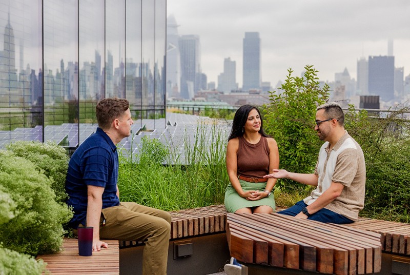 谷歌辦公樓將生態(tài)景觀與智能科技深度融合,打造復合型功能露臺:通過模塊化綠植墻形成天然氧吧,配合符合人體工學數(shù)據(jù)的戶外協(xié)作家具,構(gòu)建出支持非正式會議、靈感激發(fā)與壓力緩解的彈性空間。