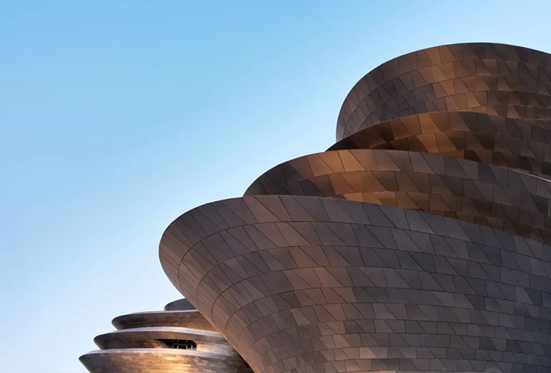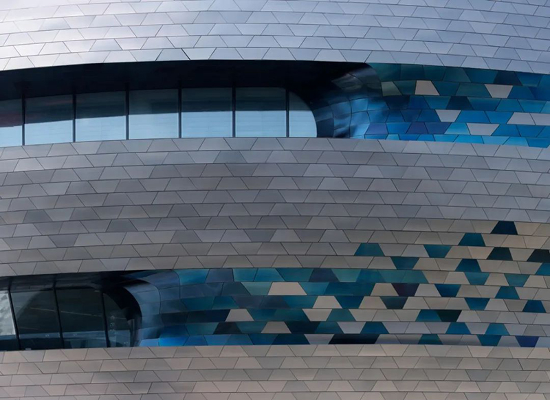 為適應(yīng)深圳亞熱帶氣候特點(diǎn),科技館采用了多項(xiàng)前沿的可持續(xù)設(shè)計(jì)策略。建筑外立面創(chuàng)新性地運(yùn)用雙色I(xiàn)NCO不銹鋼表皮系統(tǒng)(國(guó)內(nèi)首次大規(guī)模應(yīng)用),不僅呈現(xiàn)出獨(dú)特的金屬質(zhì)感漸變效果,更具備優(yōu)異的耐腐蝕和自清潔性能。通風(fēng)腔體立面與屋頂光伏系統(tǒng)的組合,有效降低了建筑能耗。此外,項(xiàng)目還引入了雨水回收系統(tǒng),并在建設(shè)過(guò)程中使用了近39萬(wàn)噸可回收建材,充分體現(xiàn)了綠色建筑理念。