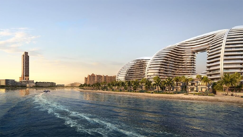 項(xiàng)目位于阿聯(lián)酋拉斯?,?shù)?Al Marjan 島,項(xiàng)目占地達(dá)128,000平方米,以一座20層雕塑感住宅塔樓為核心,沿阿拉伯海金色海岸線延展,將建筑美學(xué)與高端濱海生活完美融合。