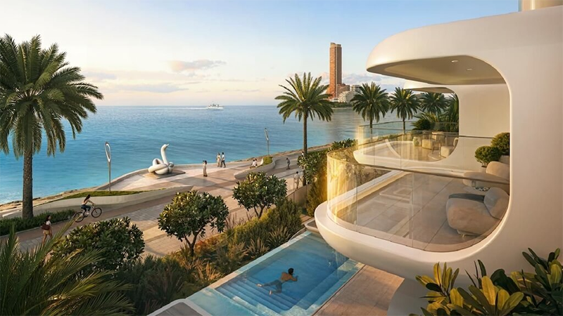 住宅部分包含950套精致住宅,涵蓋一至四居室公寓、復(fù)式公寓、頂層公寓及濱海別墅,其中75%以上戶型享有無(wú)遮擋的壯闊海景。住宅塔樓所處的42,000平方米基地內(nèi),規(guī)劃有園景花園、庭院、泳池、屋頂無(wú)邊泳池、360°觀景餐廳及配套的海灘俱樂部,為住戶提供一站式高端濱海生活體驗(yàn)。