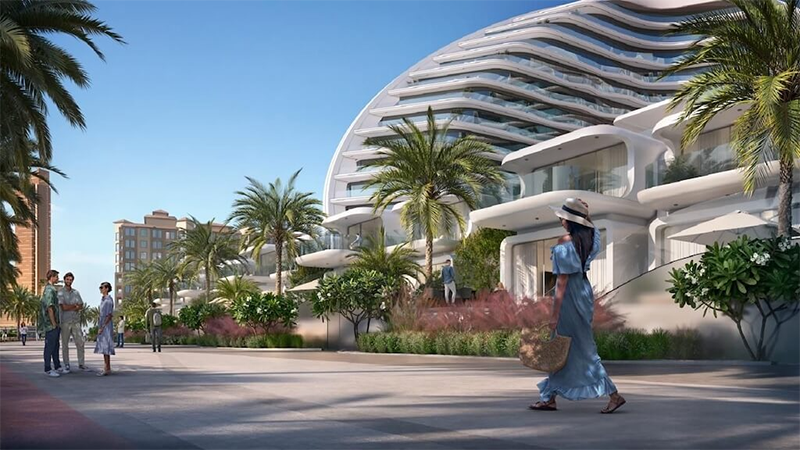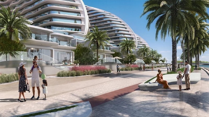 Oystra 同時(shí)融合商業(yè)與休閑功能,設(shè)置有購(gòu)物長(zhǎng)廊、餐飲區(qū)和健身娛樂中心。整個(gè)開發(fā)項(xiàng)目與 Al Marjan 島的濱海長(zhǎng)廊無(wú)縫銜接,綠樹成蔭、海風(fēng)拂面的步行系統(tǒng)讓居民可輕松通達(dá)島嶼各處。此外,項(xiàng)目引入海水冷卻系統(tǒng)與隔熱雙層外立面,有效應(yīng)對(duì)高溫氣候,降低運(yùn)營(yíng)能源負(fù)荷。
