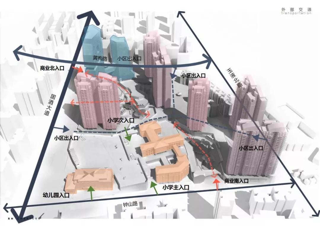 三節(jié)點:兩個主要入口及中心立體節(jié)點”